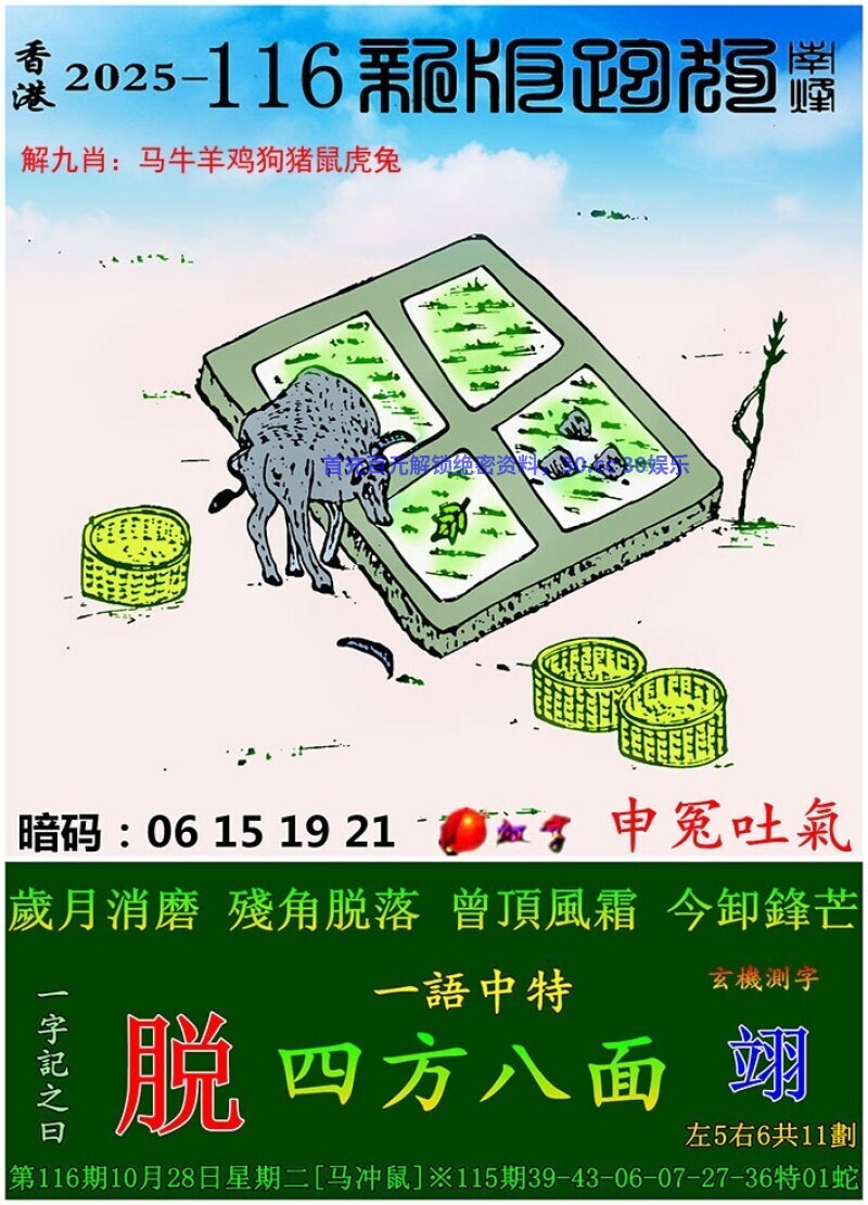 | 117期:六合社区四字来料 【阳关大道】 资料解释:阳关大道,阳关解阳肖-牛虎兔羊猴鸡。 综合六肖:牛虎兔羊猴鸡 综合四肖:牛虎兔羊 |